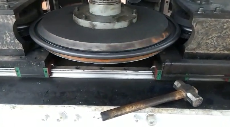 d.彎邊成型:該系統(tǒng)在彎邊輪的下面,增加了一個(gè)支撐輪,支撐輪對工件進(jìn)行有效支撐,防止圓邊變形。